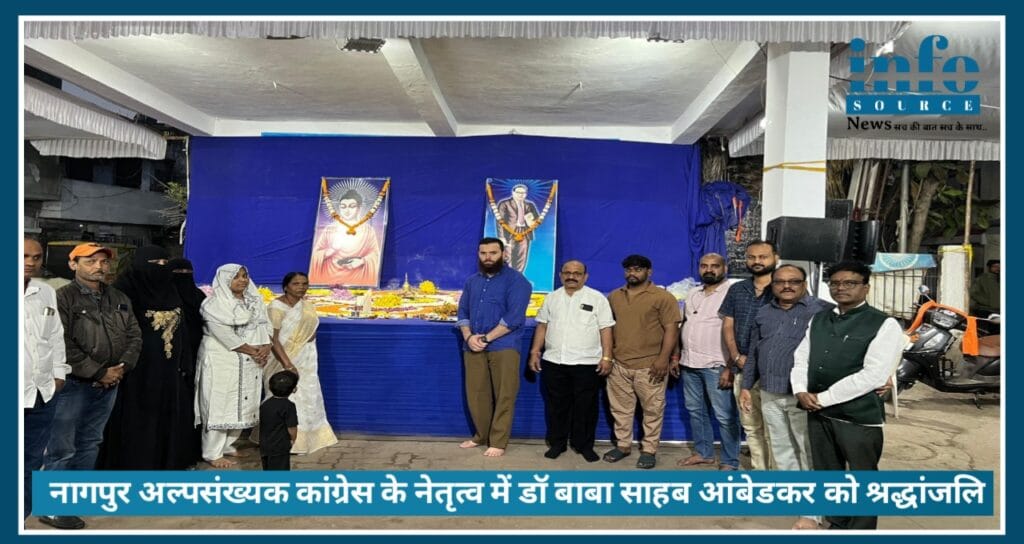 Nagpur : Dr. Baba Saheb Ambedkar के महापरिनिर्वाण दिवस के अवसर पर मध्य नागपुर के भानखेडा क्षेत्र में अल्पसंख्यक कांग्रेस कमेटी द्वारा एक भव्य एवं भावनात्मक श्रद्धांजलि कार्यक्रम आयोजित किया गया। कार्यक्रम ने पूरे इलाके को आंबेडकरवादी विचारधारा के रंग में रंग दिया।
